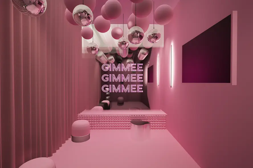 Un monochrome rose assumé, entre pop fantasy et diva energy. Banquettes, rideaux, sol… tout est pink, jusqu’au néon “Gimme Gimme Gimme” qui donne le ton. La salle parfaite pour chanter fort, briller et vivre ton main character moment.